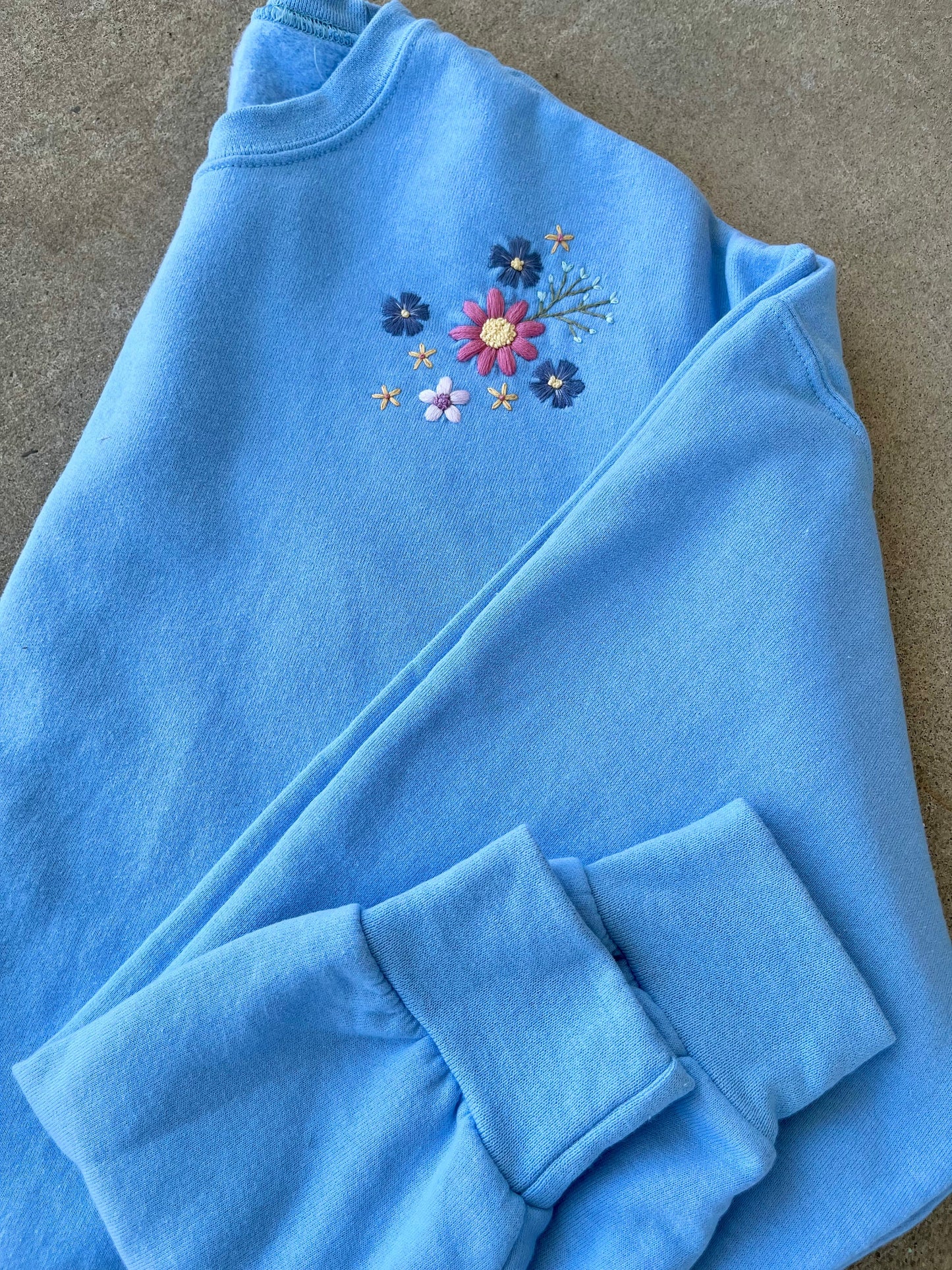 Embroidered Sweatshirt | L | Blue Embroidered Crewneck