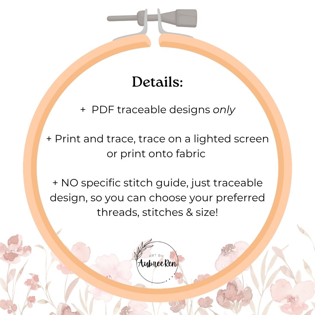 Stitch this design however you would like with your own choice of colors and stitches. On my Instagram and YouTube I will be featuring some tips and ways that I stitched some of the days. There are no specific instructions for this design.