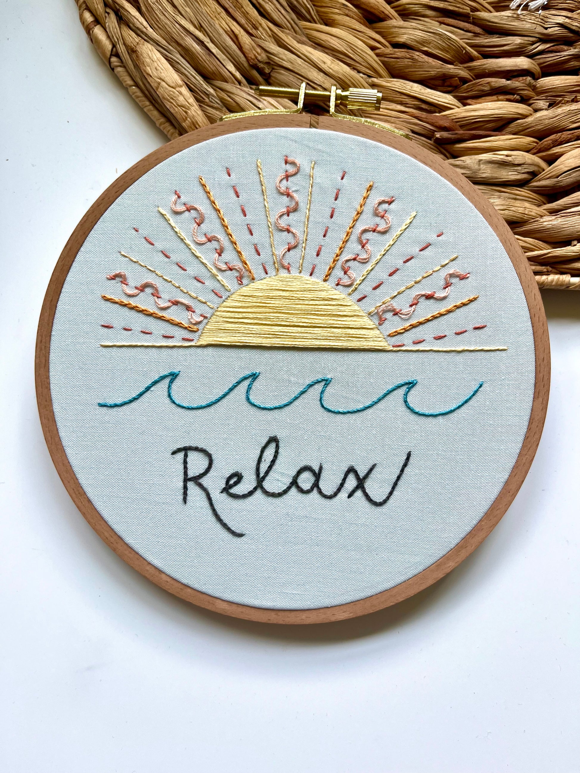 This stitch sampler comes pre-printed on light blue fabric in a 6” beechwood hoop. It’s the perfect way to practice different embroidery stitches. Great for a beginner!