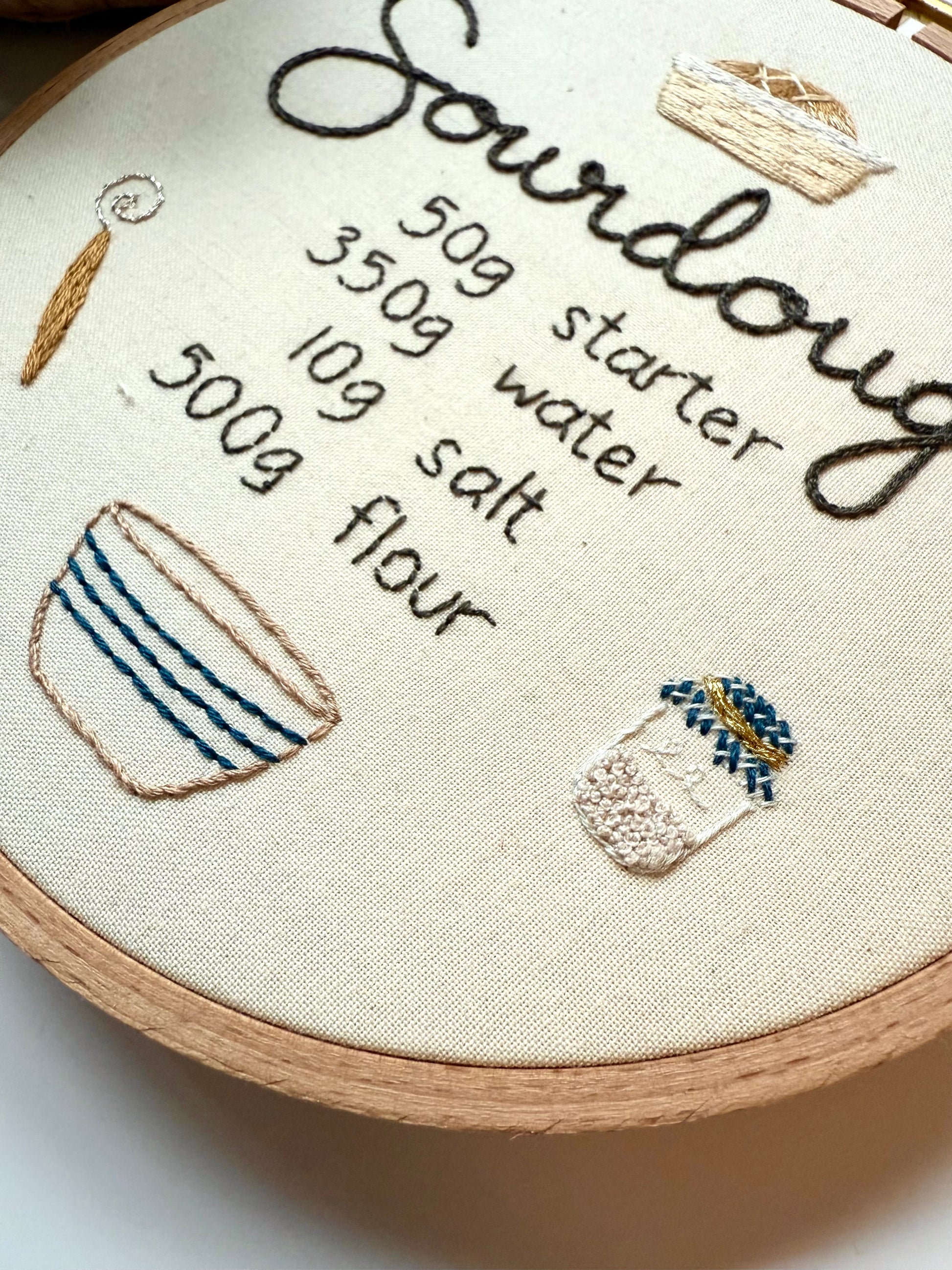 This listing is for individuals who would like to purchase a finished 6 inch hoop of the sourdough recipe embroidery. It will take me about 1-2 week turnaround time before shipping. You can leave a note on the order or email me with the measurements that you prefer on your custom hoop.